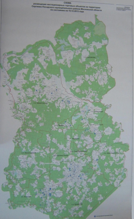2. Управлению экономического развития и агропромышленного комплекса администрации муниципального района (Королева Г.В.) утвержденную Схему направить в территориальный отдел Роспотребнадзора по Московской области в г. Ивантеевка, Пушкинском, Сергиево-Посадском районах, УМВД по Сергиево-Посадскому району, отдел надзорной деятельности по Сергиево-Посадскому району, территориальный отдел № 4 Госадмтехнадзора по Московской области в целях недопущения несанкционированной торговли и поддержания общественного порядка на территории Сергиево-Посадского муниципального района.