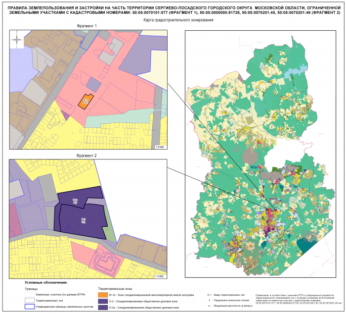 В соответствии с Градостроительным кодексом Российской Федерации, Федеральным законом от 06.10.2003 № 131-ФЗ «Об общих принципах организации местного самоуправления в Российской Федерации», Законом Московской области от 24.07.2014 №107/2014-ОЗ «О наделении органов местного самоуправления муниципальных образований Московской области отдельными государственными полномочиями Московской области», на основании Закона Московской области от 20.03.2019 №32/2019-ОЗ «Об организации местного самоуправления на территории Сергиево-Посадского муниципального района», Закона Московской области от 03.06.2019 №92/2019-ОЗ «Об отнесении города Сергиев Посад Сергиево-Посадского района Московской области к категории города областного подчинения Московской области, упразднении Сергиево-Посадского района Московской области и внесении изменений в Закон Московской области «Об административно-территориальном устройстве Московской области», Постановления Правительства Московской области от 30.12.2014 №1182/51 «Об утверждении порядка подготовки, согласования, направления проекта правил землепользования и застройки поселения, городского округа на утверждение в орган местного самоуправления муниципального района Московской области, орган местного самоуправления городского округа Московской области», письма Комитета по архитектуре и градостроительству Московской области от 23.09.2019 №28Исх-26908/05-02, письма Министерства социального развития Московской области от 23.07.2019 №21Исх-10612/10, протокола Публичных слушаний №1 от 14.08.2019 по проекту Правил землепользования и застройки территории (части территории) Сергиево-Посадского городского округа Московской области (далее – проект ПЗЗ), заключения (итогового документа) по результатам публичных слушаний, проведенных с 14 по 16 августа 2019 года,