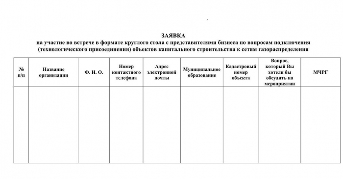 Заявки на участие по прилагаемой форме на встречу в формате видеоконференции принимаются до 01.07.2022 на адрес электронный почты: gerasimovdmv@mosoblgaz.ru.