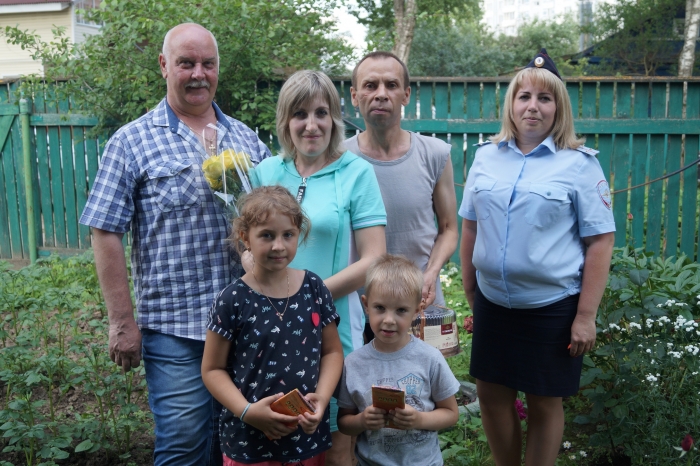 С Днем семьи, любви и верности коллеги и общественники поздравили семью начальника смены Дежурной части майора полиции Вадима Черножукова и младшего инспектора кинолога прапорщика полиции Яну Черножукову, воспитывающих четверых детей, сотрудницу отдела тылового обеспечения Марию Морозову, воспитывающую троих детей.