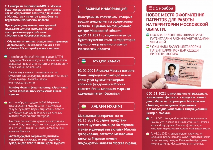 В соответствии с постановлением Правительства Московской области от 28.09.2021 № 934/34 уполномоченным органом по оформлению и выдаче иностранным гражданам патентов для осуществления трудовой деятельности на территории Московской области определено Государственное бюджетное учреждение г. Москвы «Многофункциональный миграционный центр».