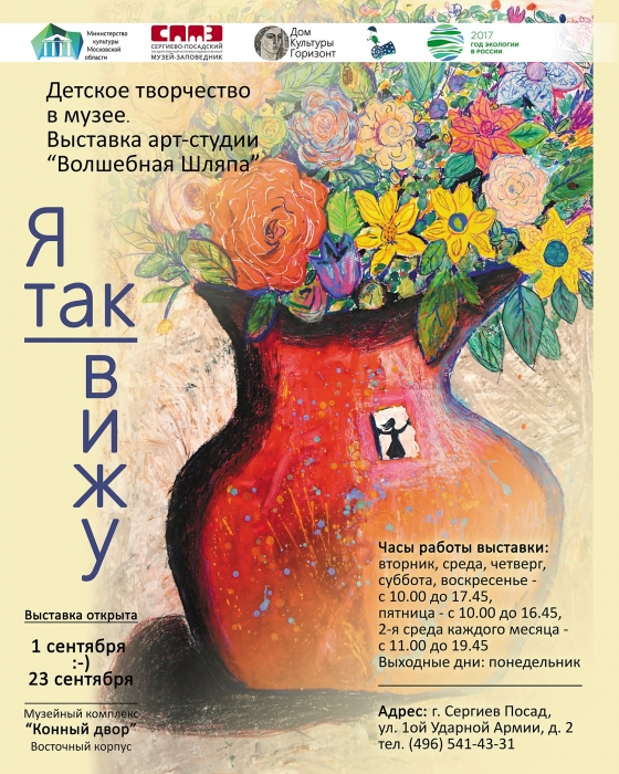 31 августа, в 16.00 состоится открытие выставки "Я так вижу" (совместный проект с арт-студией "Волшебная Шляпа") Место проведения: восточный корпус м/к "Конный двор".