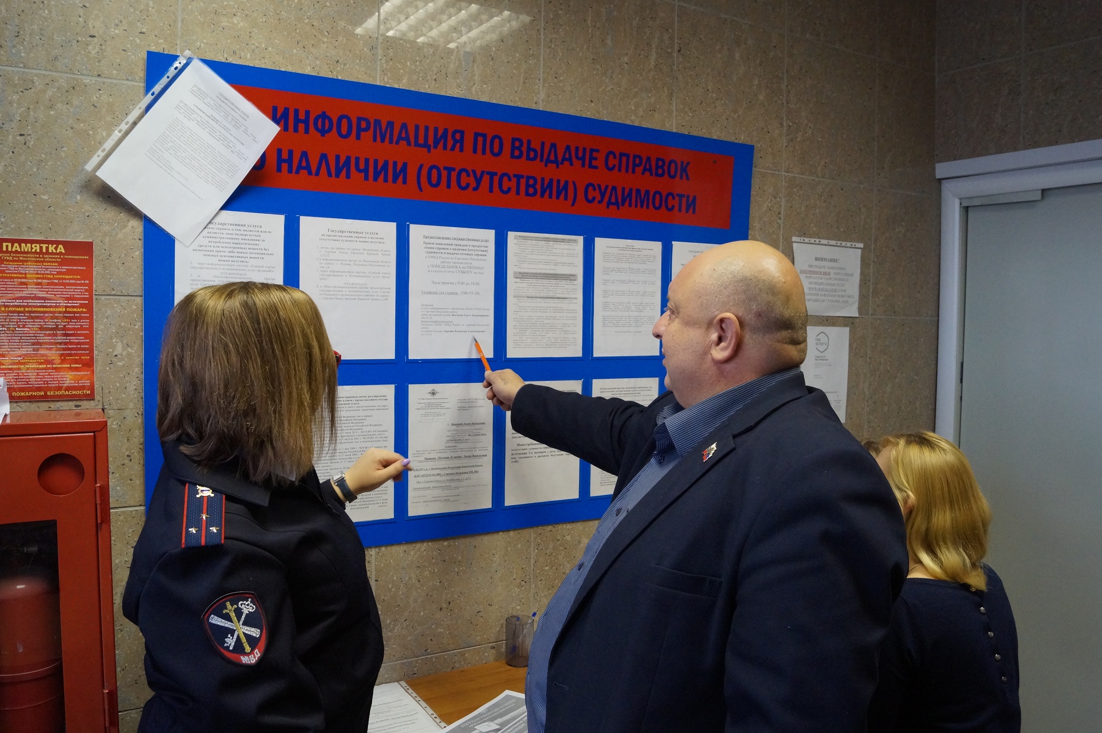 12 октября Председатель Общественного совета при УМВД России по Сергиево-Посадскому району Михаил Шляхин проверил качество оказания государственных услуг населению по выдаче справок о наличии (отсутствии судимости).