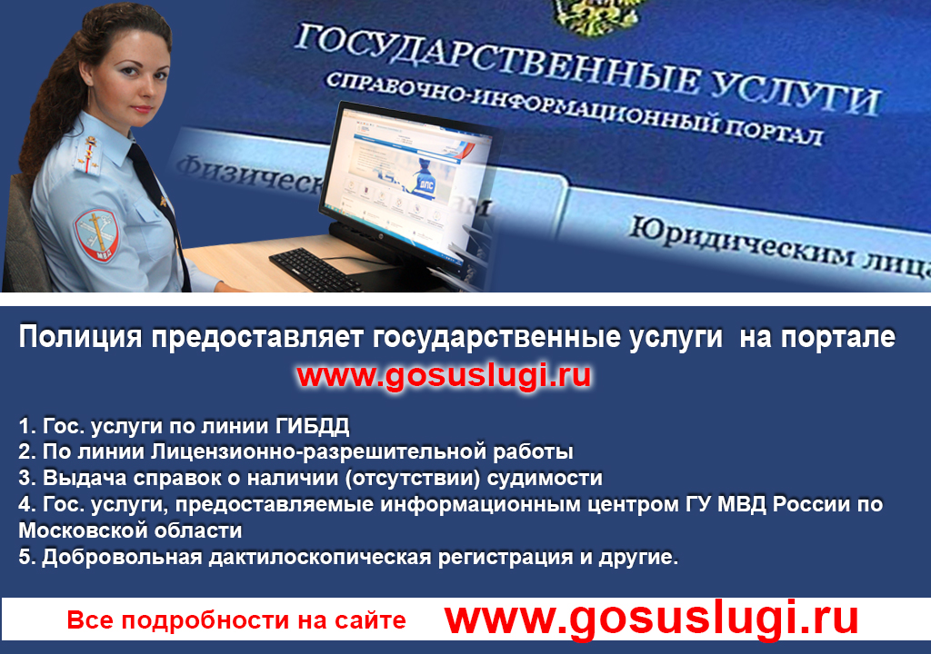 Граждане могут воспользоваться всеми преимуществами быстрого и бесконтактного документооборота и получить необходимые услуги без потери времени и качества, зарегистрировавшись один раз на сайте www.gosuslugi.ru, вы получите доступ ко всем услугам портала, в том числе и тем, которые оказываются МВД России.