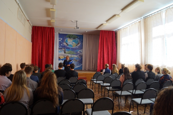 В рамках проводимой профориентационной работы сотрудник полиции подробно рассказала школьникам и их родителям о порядке и требованиях, предъявляемых для поступления в ВУЗы МВД России на 2018 год, и о трудоустройстве в органы внутренних дел.