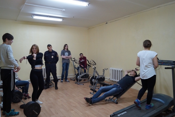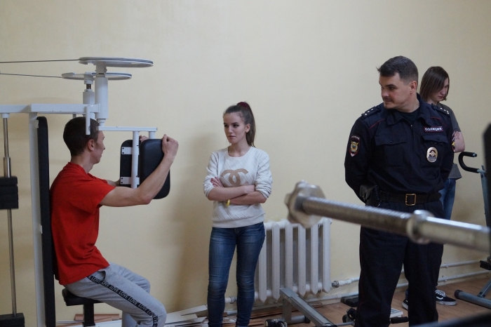 После профилактической беседы студенты показали сотрудникам полиции тренажерный зал и продемонстрировали комплекс силовых упражнений.