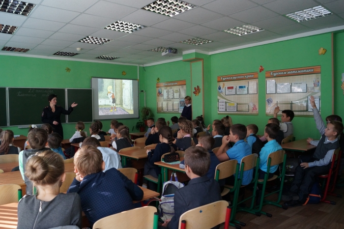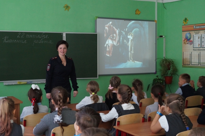 Стражи правопорядка разъяснили ребятам, как они должны себя вести на объектах железнодорожного транспорта, рассказали ребятам об опасности, которая может подстерегать тех, кто пренебрегает правилами безопасного поведения. Далее для детей была продемонстрирована презентация с героями мультфильмов. На примере этой презентации сотрудники полиции разъяснили учащимся, как надо правильно вести себя в общественном месте, по пути в школу и обратно домой.