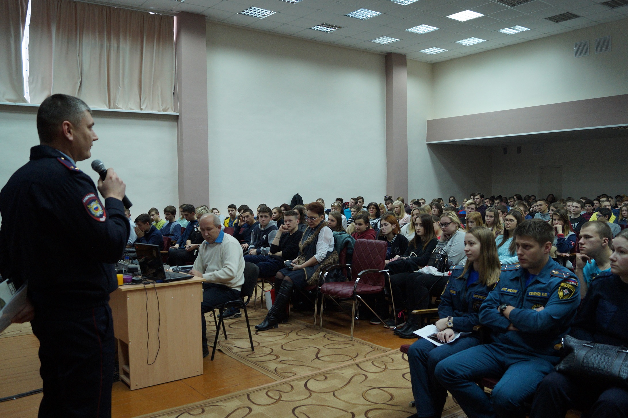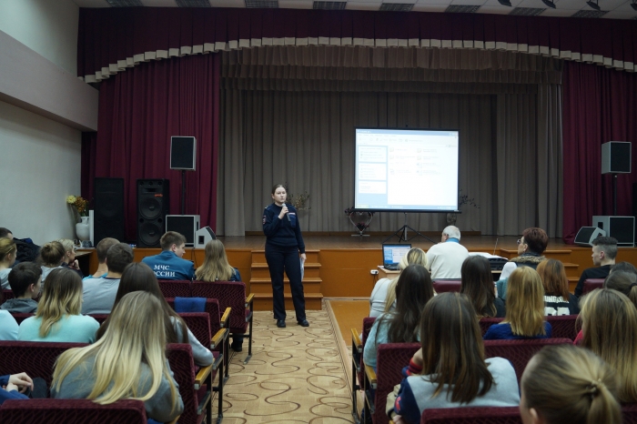 Студенты с большим вниманием смотрели тематические видеоролики, слушали сотрудников полиции и сотрудников МЧС, вступали в дискуссию, задавали вопросы и получали ответы.