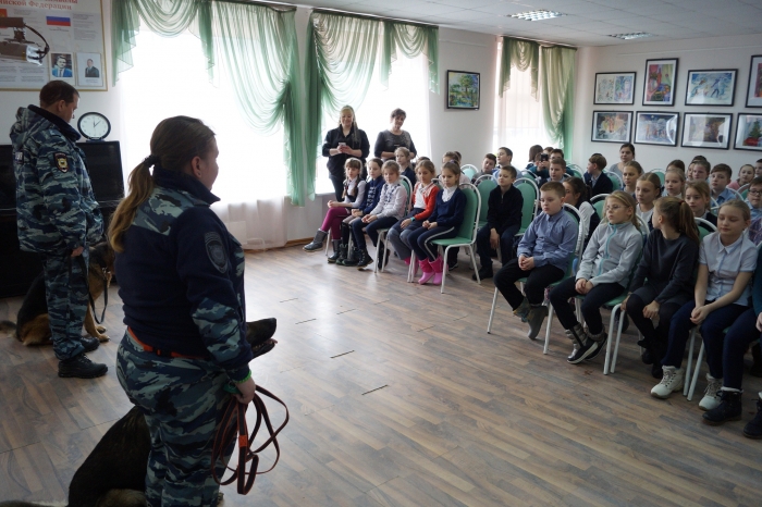 В начале мероприятия сотрудники кинологической службы познакомили ребят со своими служебными питомцами и рассказали о профессии: о том, как четвероногие служители закона тренируются и работают на месте преступления, в каких условиях тренируются.