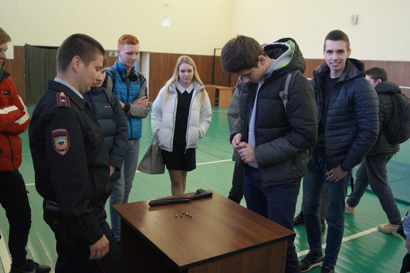 Сотрудник Отдела по работе с личным составом рассказала молодым людям об основных требованиях при поступлении в учебные заведения МВД России, также студентам был продемонстрирован видеоролик о Московском университете МВД Российской Федерации имени В. Я. Кикотя.