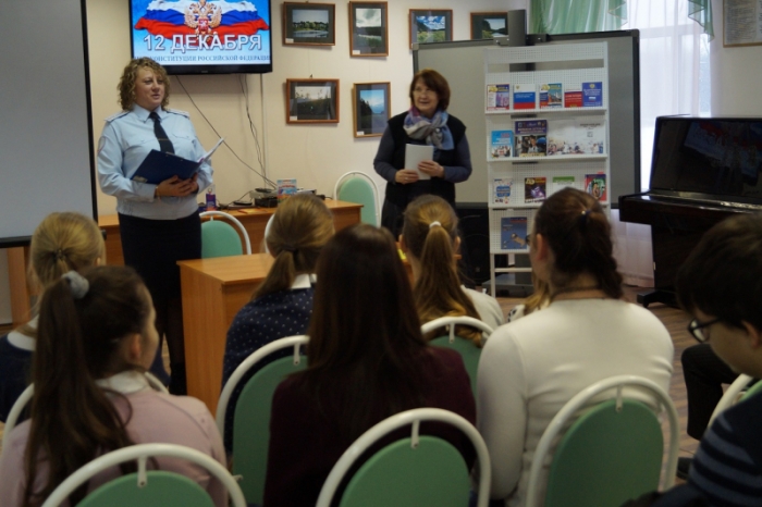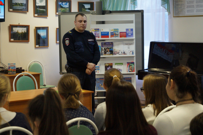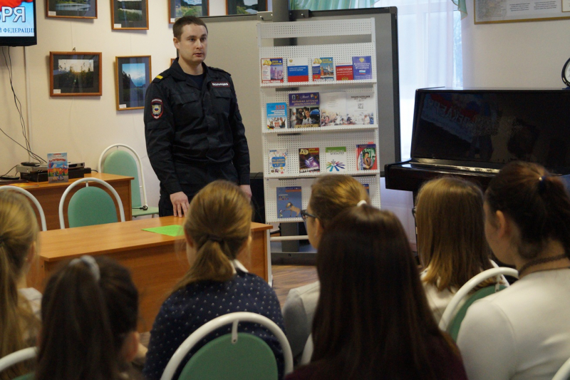 Сотрудники УМВД России по Сергиево-Посадскому району провели открытый урок для учеников девятых классов в детской библиотеке на Новоугличском шоссе, посвященный Дню героев Отечества.