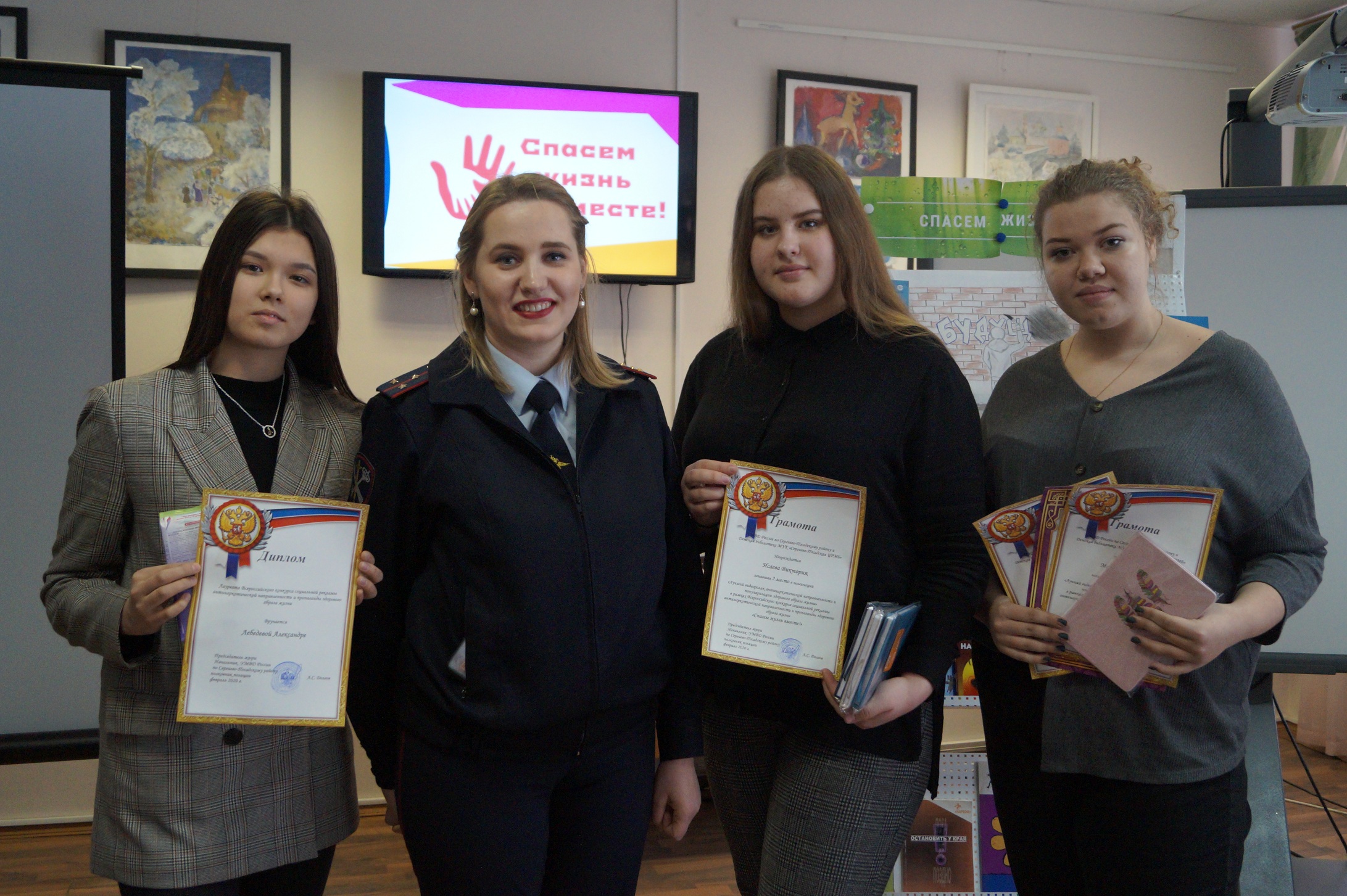 В завершение мероприятия полицейские совместно с сотрудниками библиотеки поблагодарили юных участников конкурса за представленные работы, вручили грамоты, сувениры, сладкие подарки и сделали совместные фотографии на память.