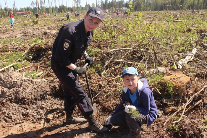Всем участникам данного мероприятия «Лес Победы» выдавались перчатки, необходимый инвентарь и саженцы елей. Посадка деревьев сопровождалась музыкой и хорошим настроением всех участников. Так сотрудники полиции со своими детьми посадили порядка 200 елей и сосен.