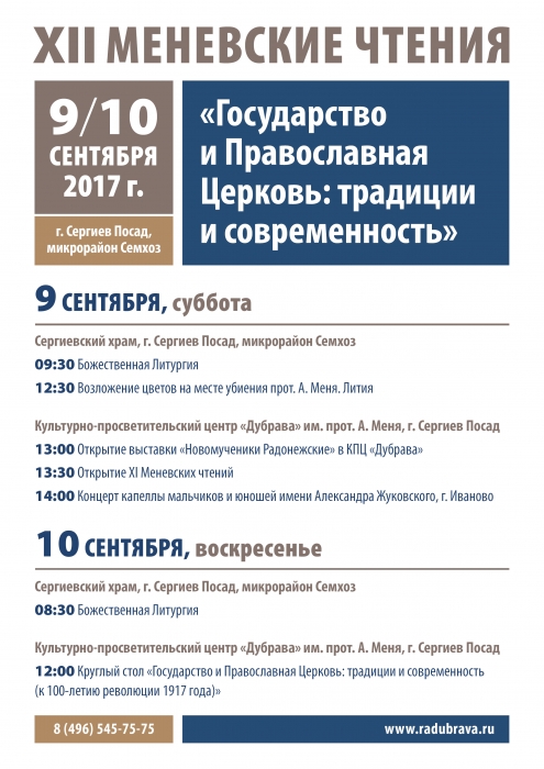 9 и 10 сентября в Семхозе состоятся традиционные Меневские чтения.